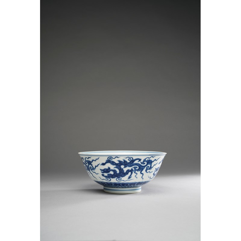 A RARE CHINESE IMPERIAL BLUE AND WHITE 'KUI DRAGON' BOWL