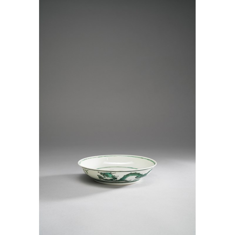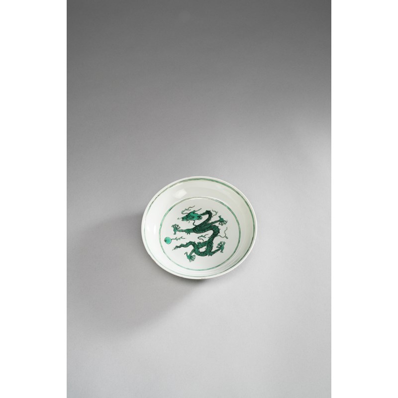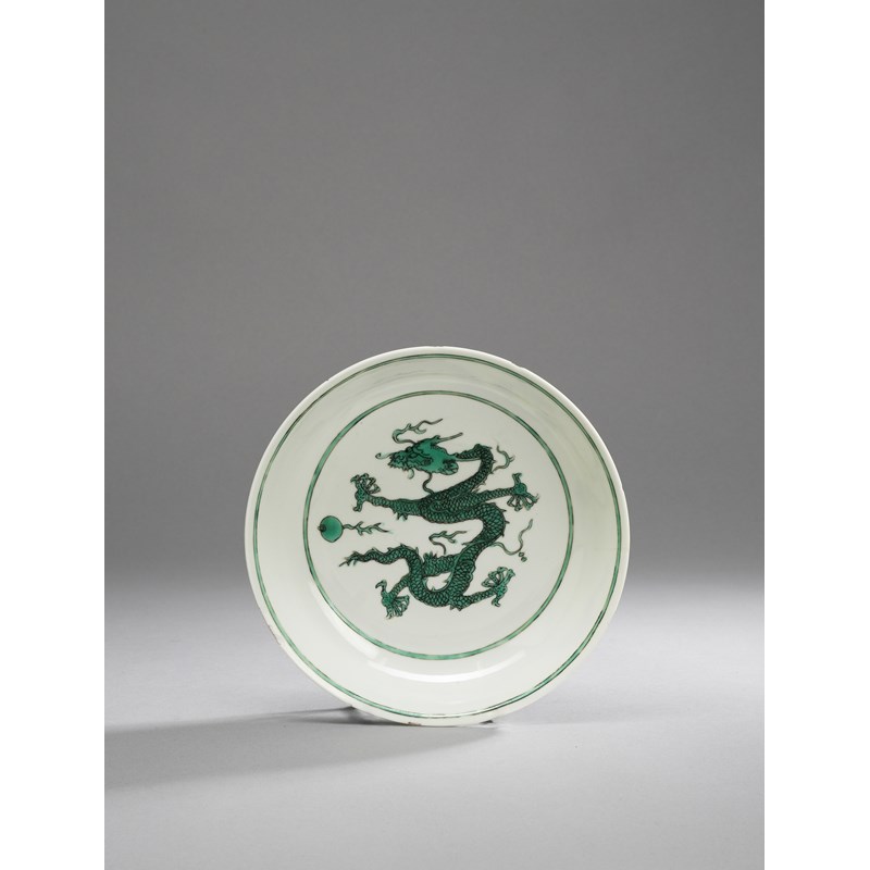 A RARE CHINESE GREEN-ENAMELLED 'DRAGON' DISH