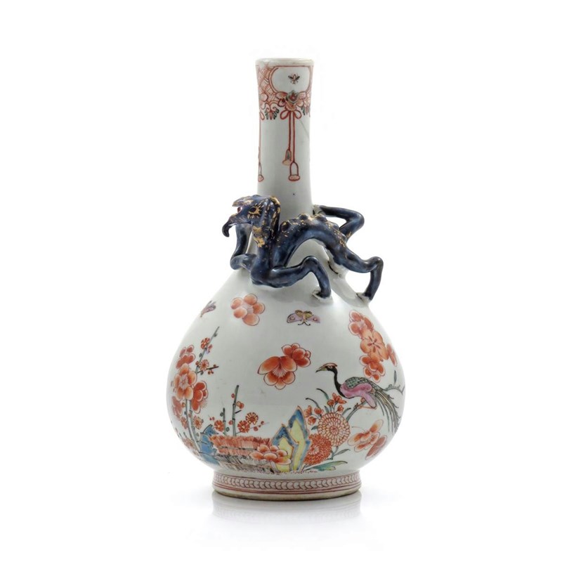 Cf. European Decoration on Oriental Porcelain, p.91, pl.24 for two similar vases in the Ashmolean Museum. Four bottles similar to this, but with Dutch-decoration of Japanese figures, were in the collection of Augustus the Strong.