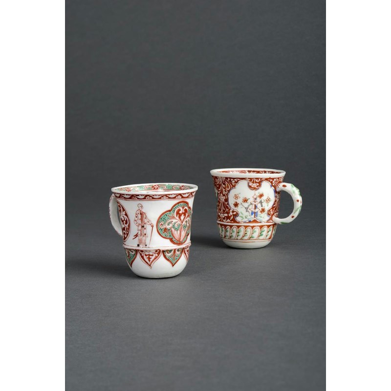 This shape again derives from English stoneware and silver and these cups are a wonderful combination of a European shape in Chinese porcelain with Japanese-style decoration.