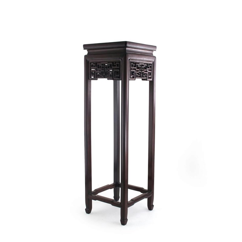 A Chinese hardwood stand 19th century, with a square top, the four legs joined by stretchers and with a reticulated apron, 91.5cm x 27.8cm x 27.8cm.