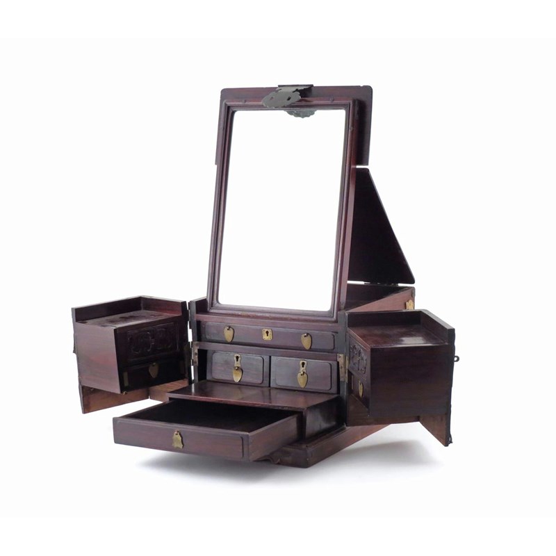 A Chinese hardwood travelling vanity chest 19th century