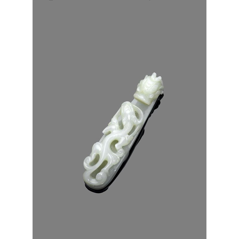 十八/十九世紀 青白玉雕螭龍帶鉤