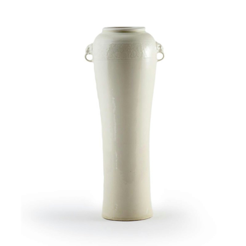 A large Chinese blanc de Chine vase 19th century, the tall ovoid body with a gently flared foot, incised with a band of scrolling foliage to the shoulder, and with two loop animal mask handles, 40cm.