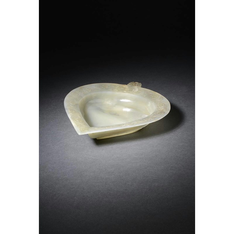 十八/十九世紀 青白玉雕纏枝花卉紋葉形碟