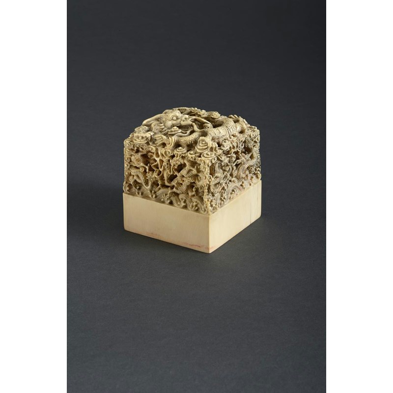λ A Chinese carved ivory nine dragon square seal 19th century