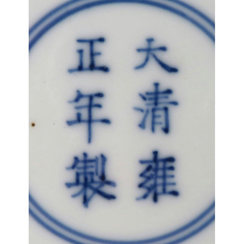 A Chinese underglaze blue and iron-red decorated bats dish six character Yongzheng mark and of...