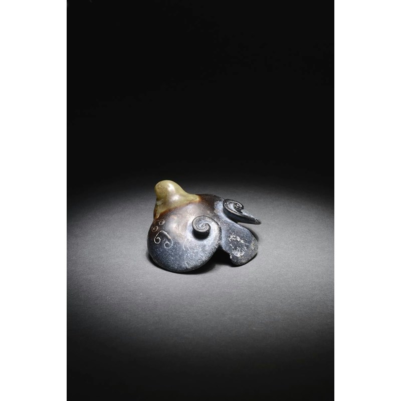 漢代或更晚 褐玉雕仿古玄鸟擺件