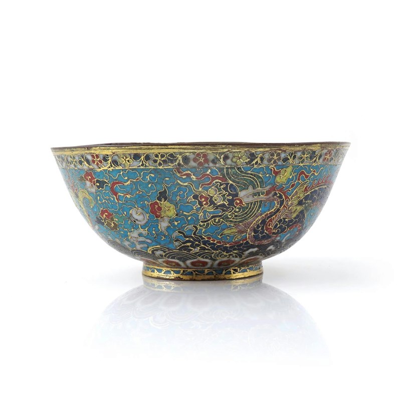 明 銅胎掐絲琺瑯雙龍戲珠碗