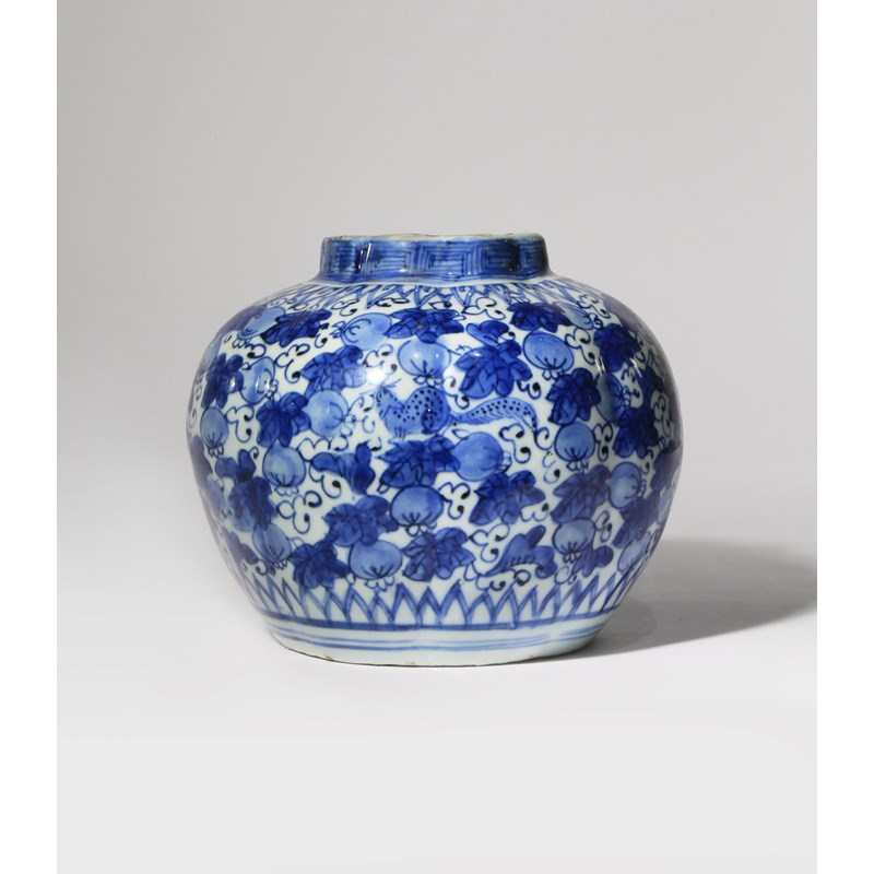 A CHINESE BLUE AND WHITE 'SQUIRREL AND VINE' VASE WANLI 1573-1620 The lobed octafoil body painted...