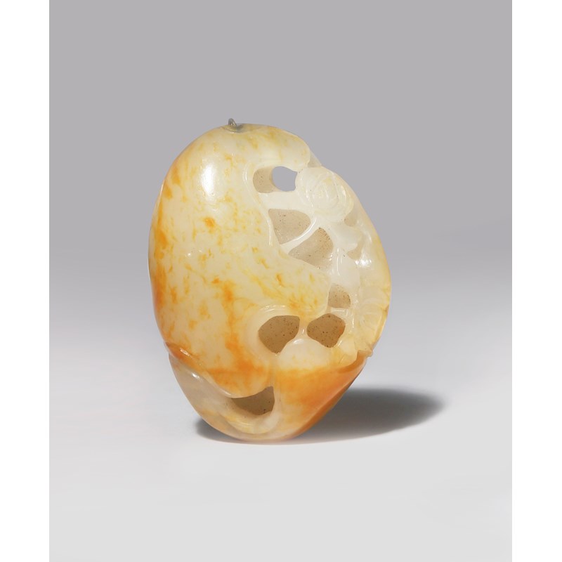 A CHINESE PALE CELADON JADE PENDANT LATE QING DYNASTY Carved as lotus leaves curled together...