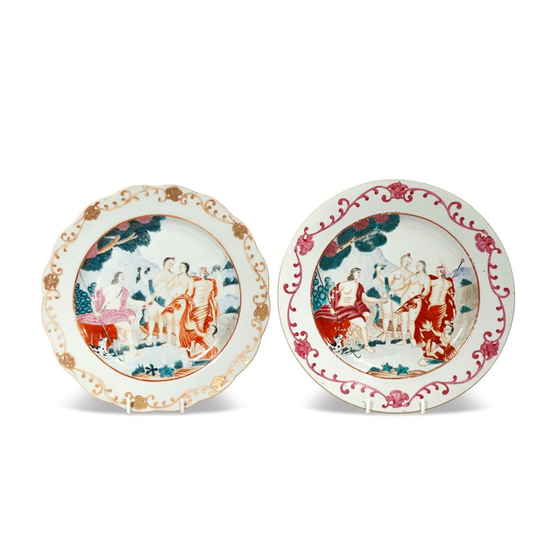TWO CHINESE FAMILLE ROSE 'JUDGEMENT OF PARIS' PLATES