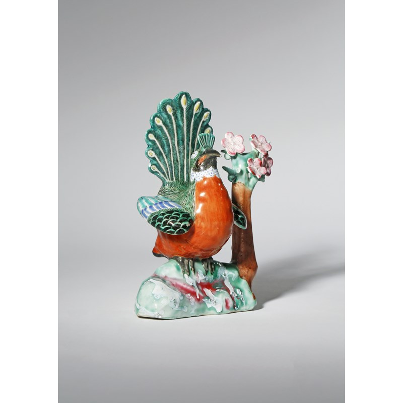 A CHINESE FAMILLE ROSE MODEL OF A PEACOCK