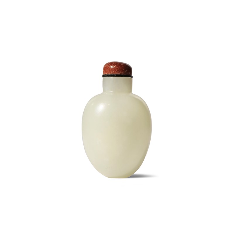 A CHINESE WHITE JADE OVOID SNUFF BOTTLE QIANLONG 1736-95 Tapering towards the foot and with a...