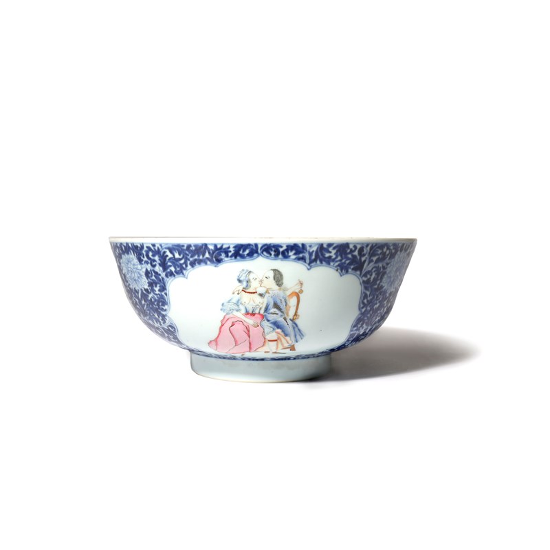 A CHINESE FAMILLE ROSE EROTIC EUROPEAN SUBJECT BOWL