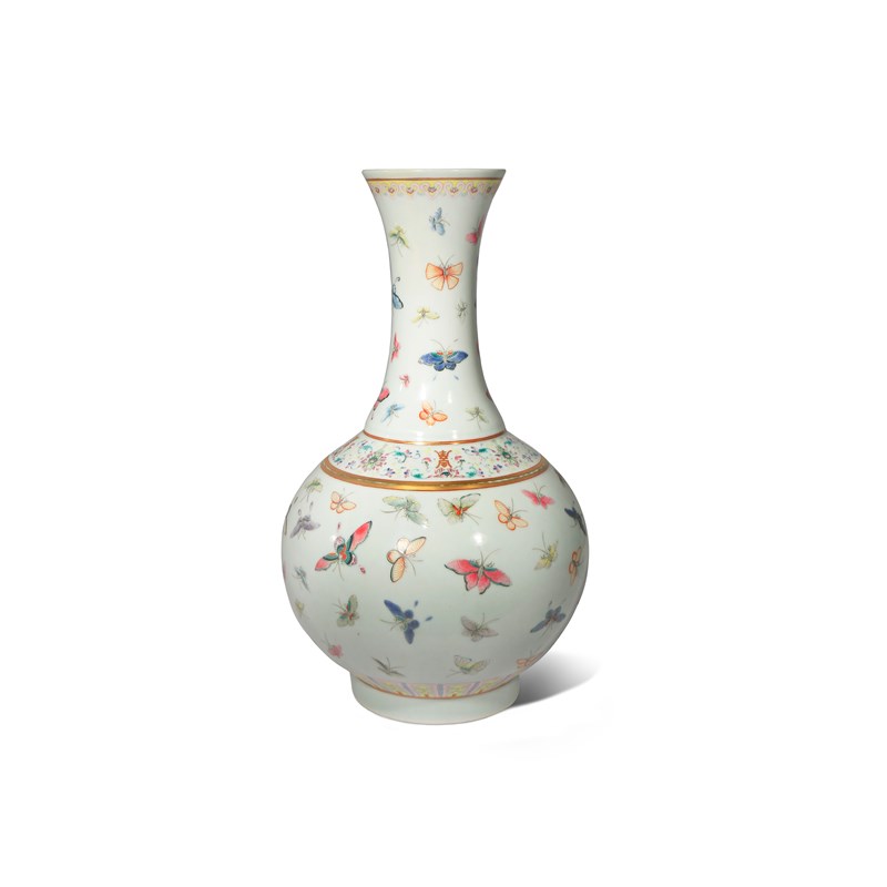 A CHINESE FAMILLE ROSE 'BUTTERFLY' BOTTLE VASE