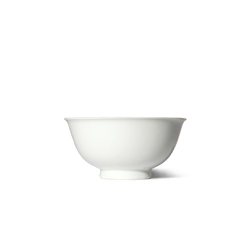 A RARE CHINESE WHITE GLAZED ANHUA-DECORATED 'DRAGON' BOWL 18TH CENTURY The U-shaped body rising...