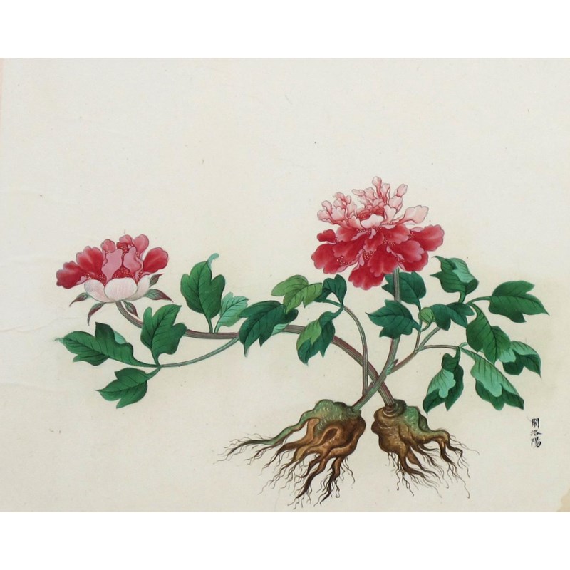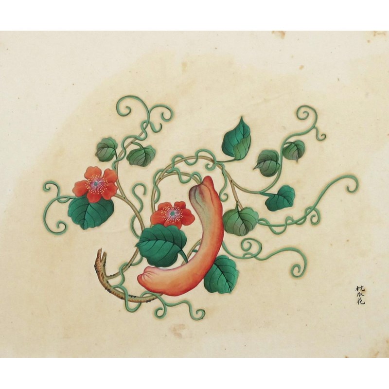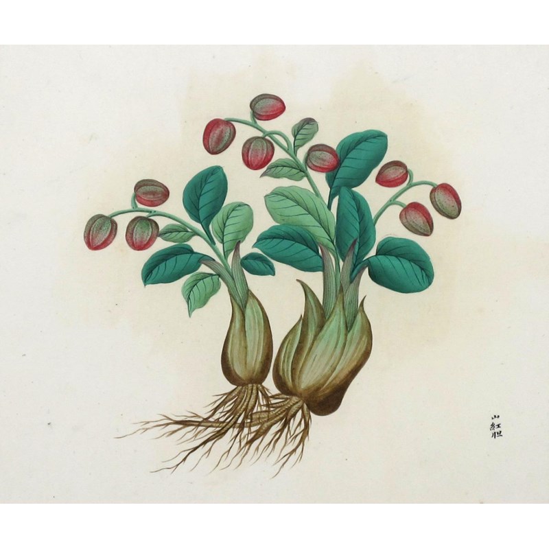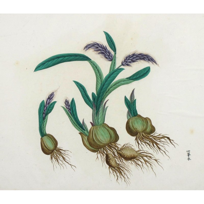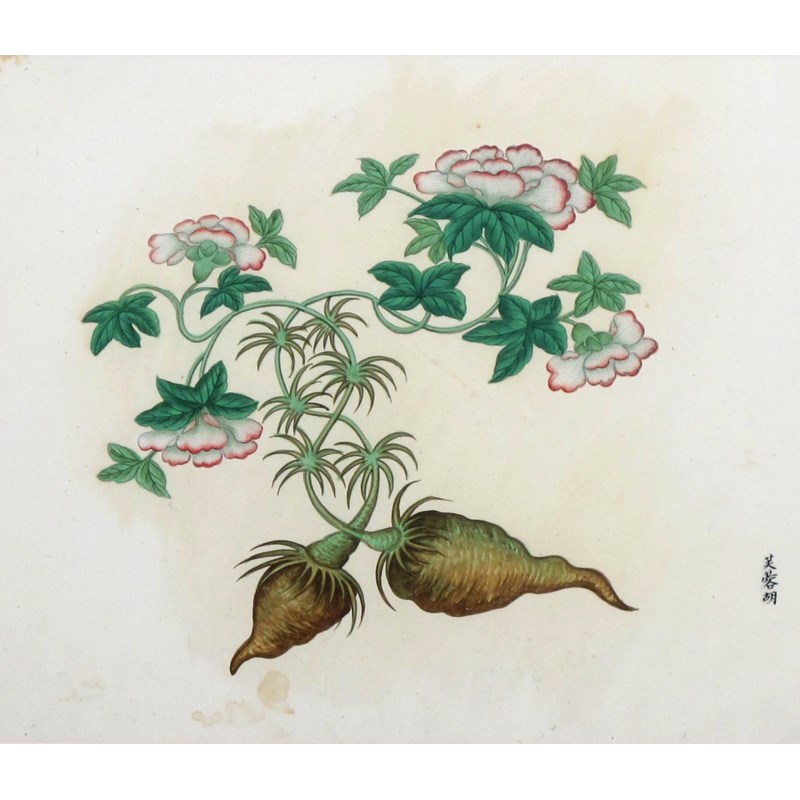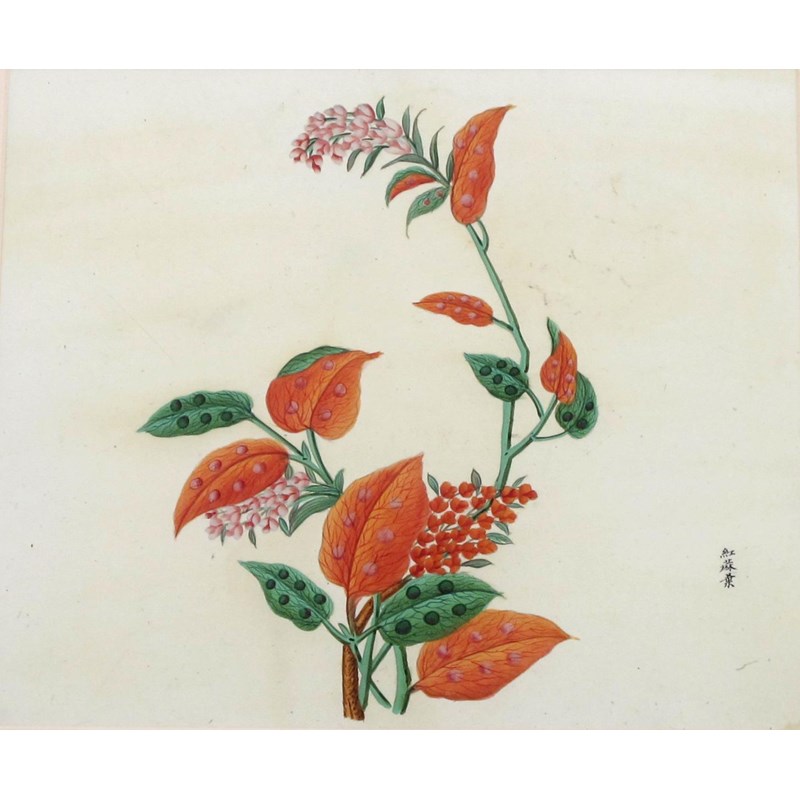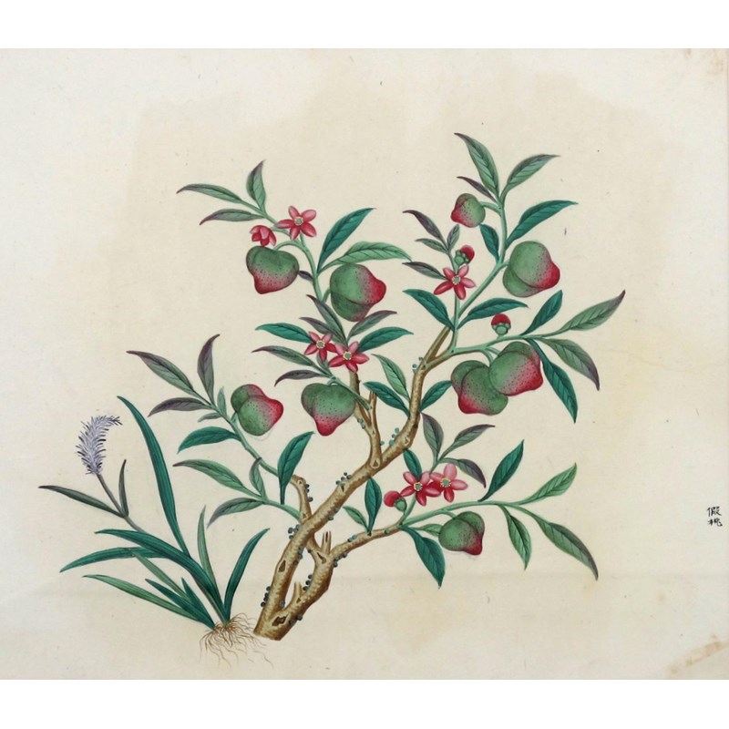 A set of eight Chinese school paintings on paper 19th century, depicting floral botanical specimens, named in Chinese characters, framed and glazed, 27cm x 31.5cm. (8)