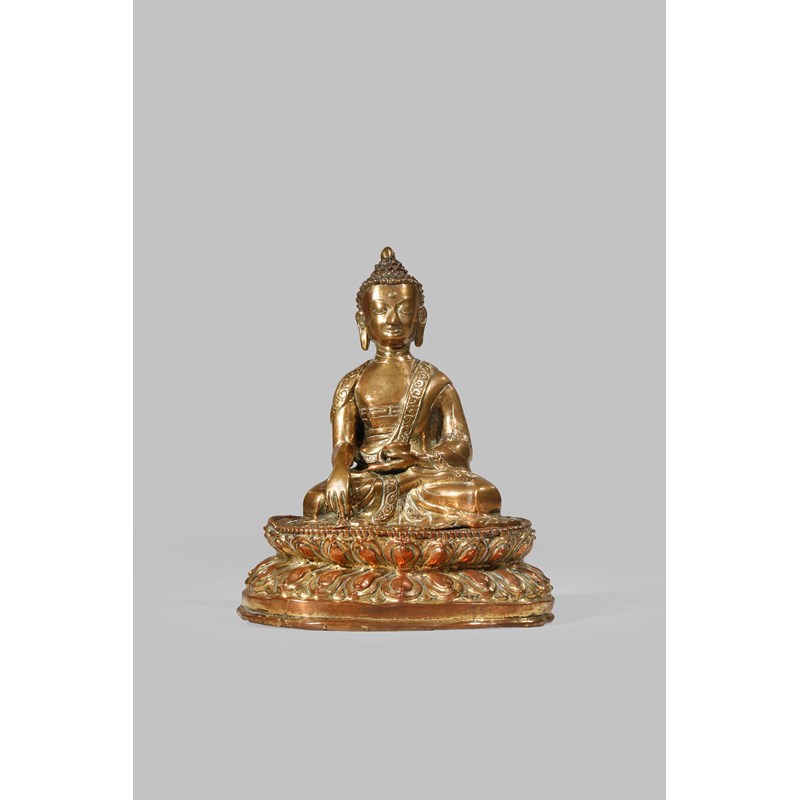 A CHINESE GILT-COPPER FIGURE OF BUDDHA SHAKYAMUNI 18TH/19TH CENTURY Seated in vajraparyankasana