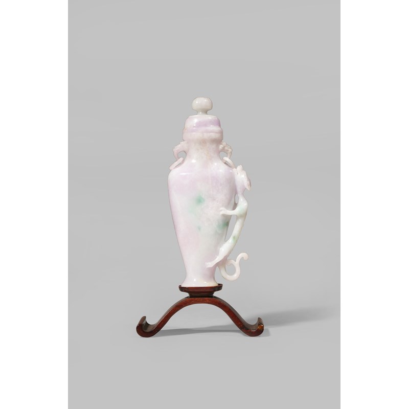 A CHINESE LAVENDER JADEITE VASE AND COVER