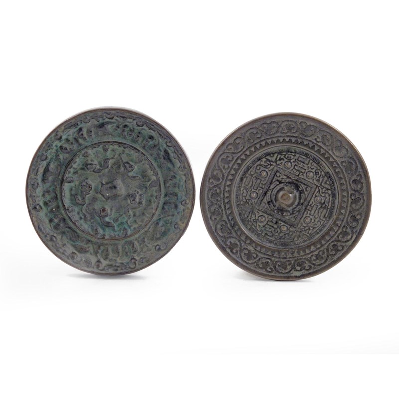 Two Chinese bronze mirrors Tang dynasty and probably later