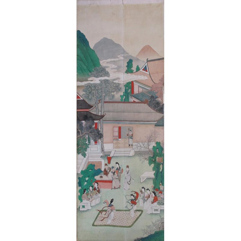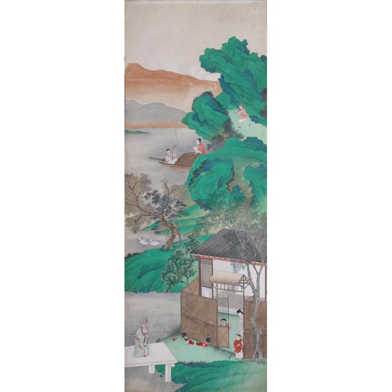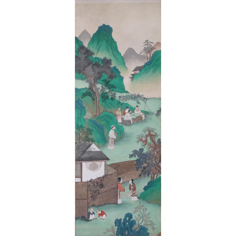 十九世紀 彩繪山水人物屏 十二幅 設色紙本