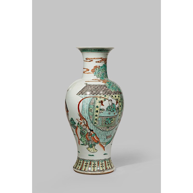 A CHINESE FAMILLE VERTE BALUSTER VASE 19TH CENTURY Decorated with a figure in a pavilion...