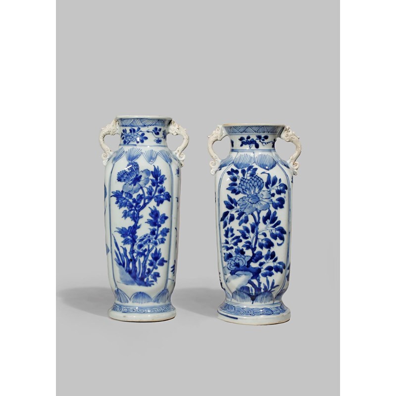 A NEAR PAIR OF CHINESE BLUE AND WHITE VASES