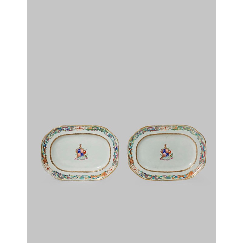 A PAIR OF CHINESE ARMORIAL SMALL OVAL DISHES