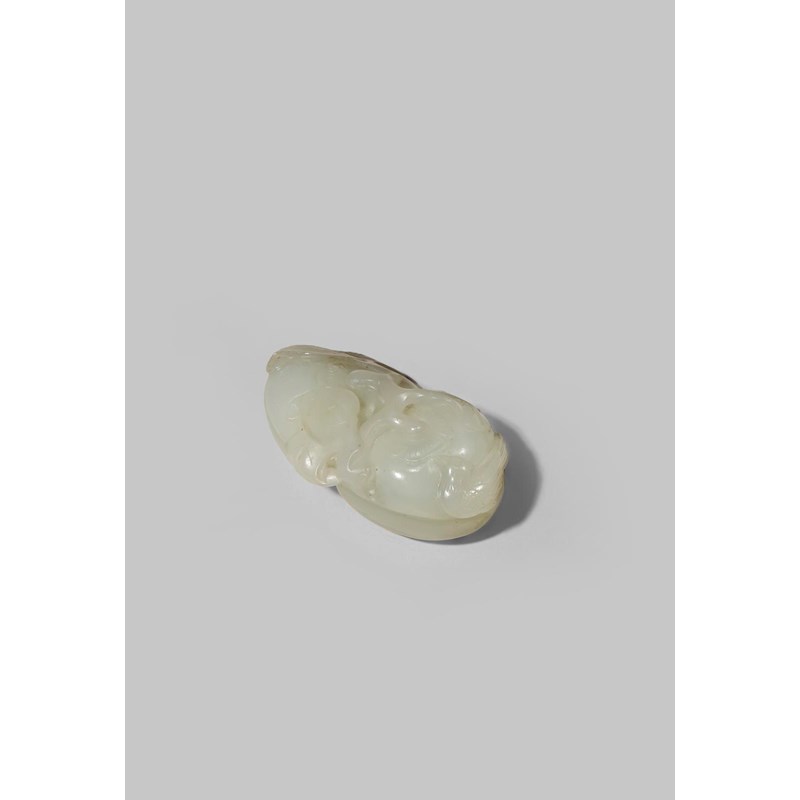 A CHINESE WHITE JADE CARVING OF TWO SHARON FRUIT QING DYNASTY The two fruit issuing from one...