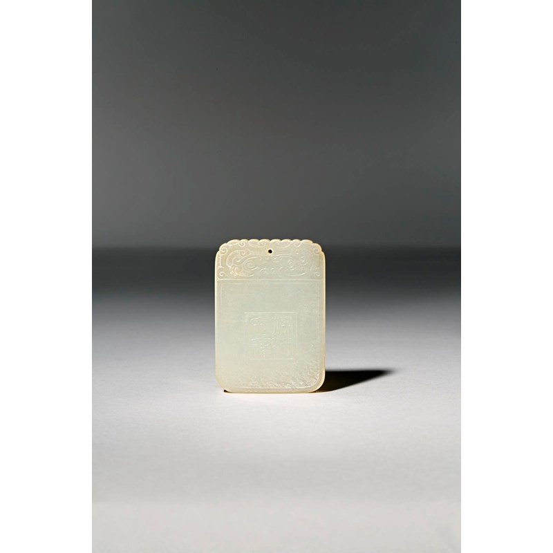A CHINESE WHITE JADE 'GOOSE' PENDANT QING DYNASTY Carved in low relief to one side with a goose...