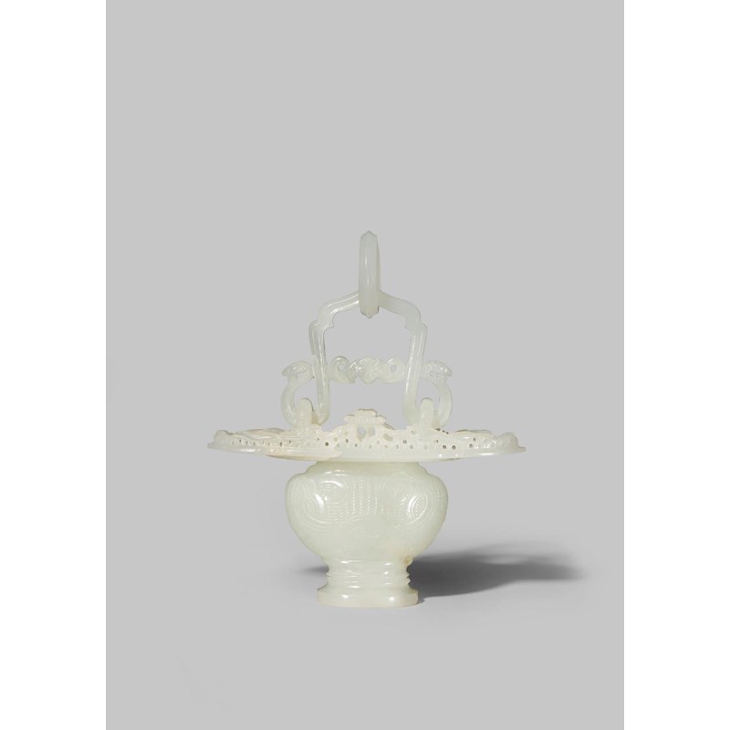 Cf. M Wilson, Chinese Jades, p.53, no.54 for a white jade hanging vase, see also J Watt, Chinese Jades from the Collection of the Seattle Art Museum, p.102, no.84 for a related pair of hanging baskets.