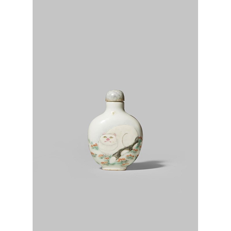 A CHINESE FAMILLE ROSE 'CATS' SNUFF BOTTLE FOUR CHARACTER DAOGUANG SEAL MARK AND OF THE PERIOD...