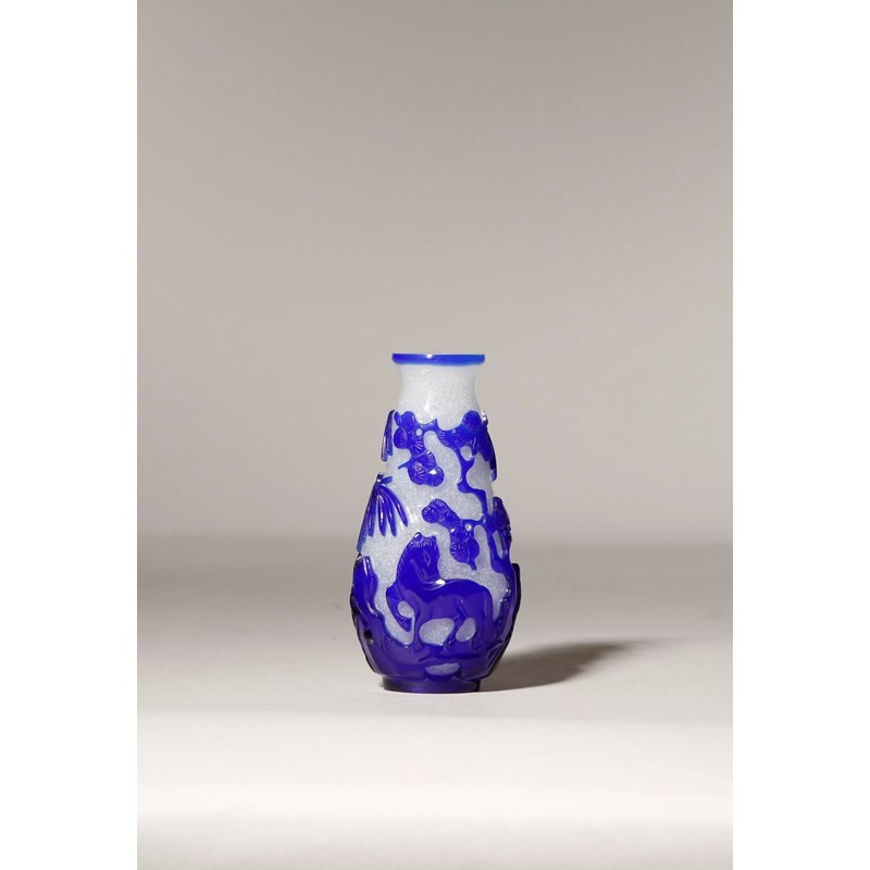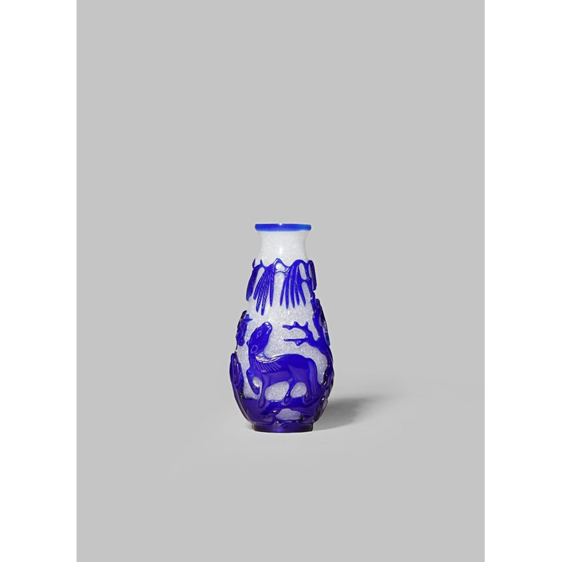 十八/十九世紀 雪霏地套藍料駿馬圖紋鼻煙壺