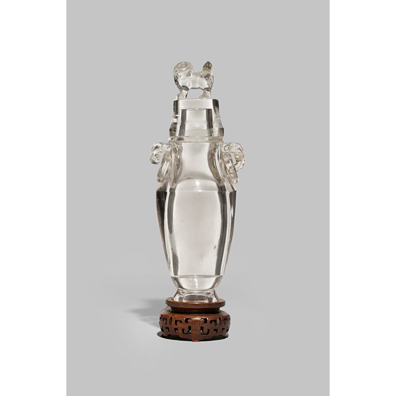 A LARGE CHINESE ROCK CRYSTAL VASE AND COVER QING DYNASTY With a tapering body and a waisted...