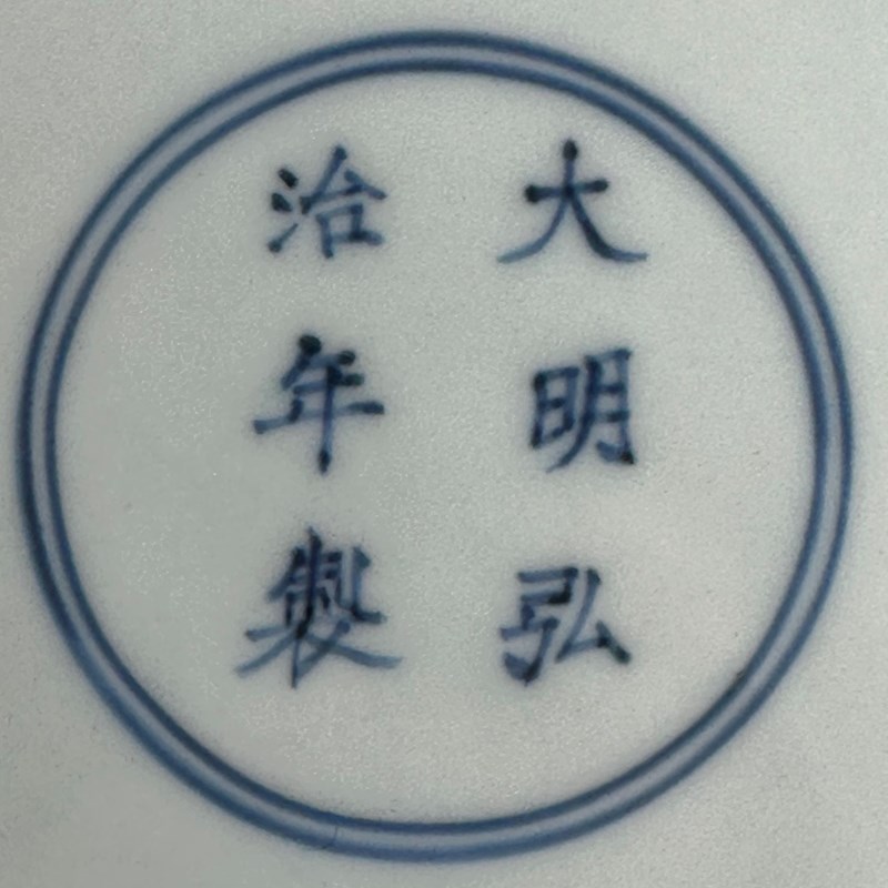 《大明弘治年製》青花楷書款