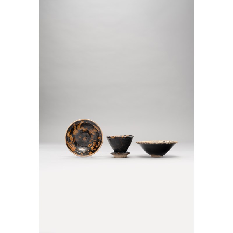 宋或更晚 吉州窯碟、杯及撇口碗 一組三件