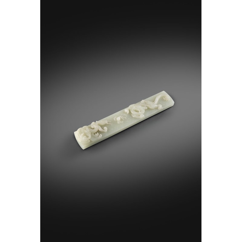 A CHINESE PALE CELADON JADE 'DRAGON' SCROLL WEIGHT