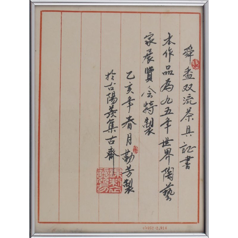 This tea set was made specifically for the Aberystwyth International Potters Festival in 1995, at which Yang Qinfang demonstrated alongside Miss Zhou Dingfang. The tea set took six months to complete.