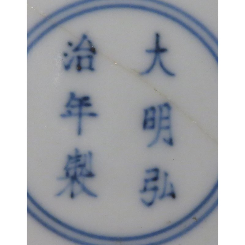 Comprising a pair of water droppers formed as lotus seed pods, a water dropper formed as a gourd, a fan-shaped dish and six circular dishes, the largest with a six character Hongzhi mark, 21.6cm. (10)
