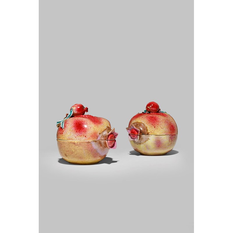 A PAIR OF CHINESE FAMILLE ROSE POMEGRANATE-SHAPED BOXES AND COVERS