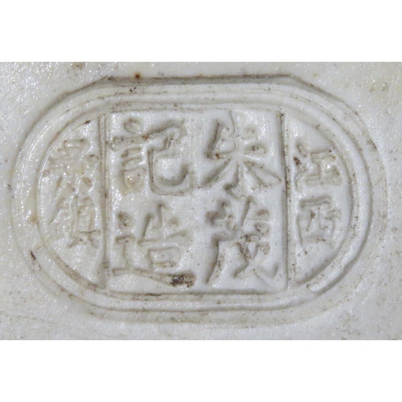 Seated holding a rosary, the base with an impressed mark, 21.5cm.