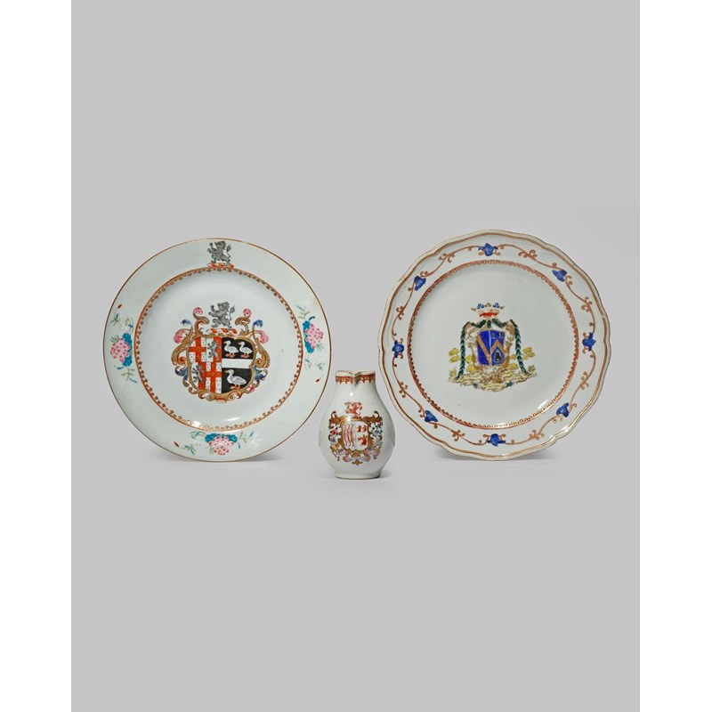 THREE CHINESE ARMORIAL ITEMS 18TH CENTURY Comprising a jug