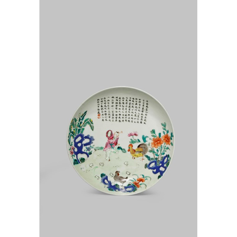 A CHINESE FAMILLE ROSE 'CHICKEN' PLATE