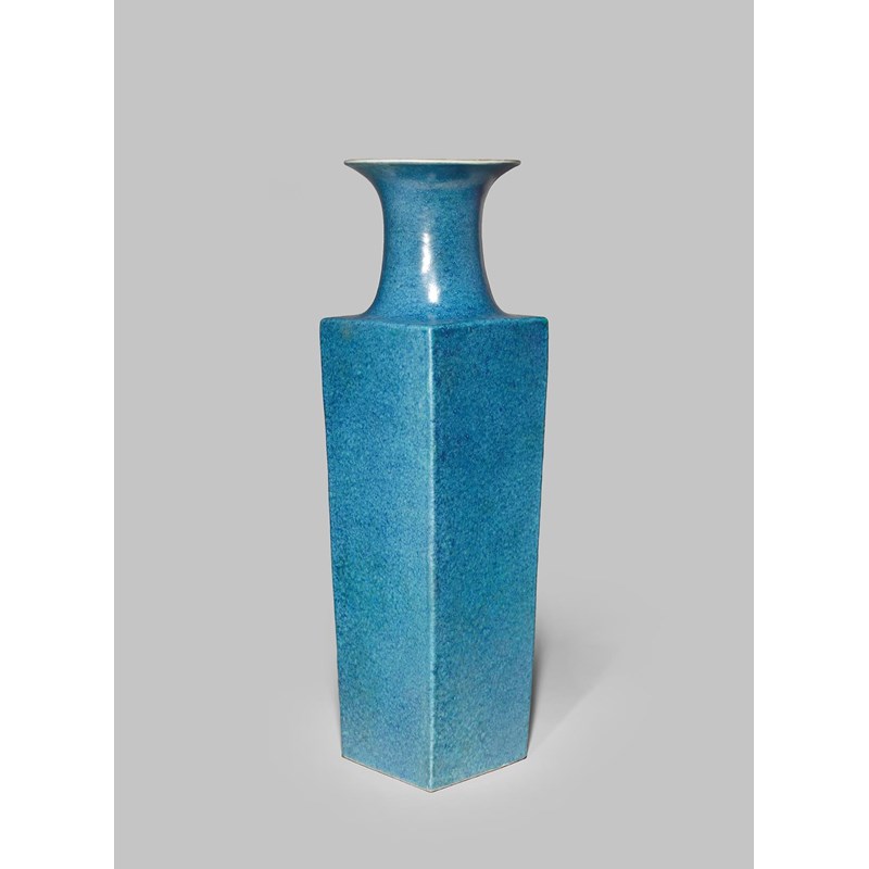 A LARGE CHINESE SQUARE-SECTION ROBIN'S EGG GLAZED VASE 19TH CENTURY The tapering body rising to a...