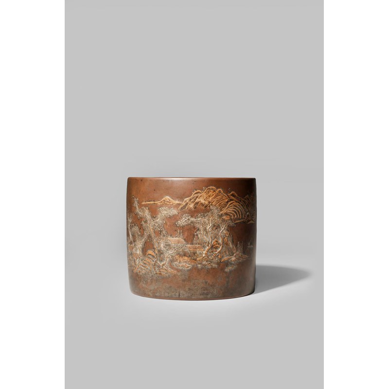 A CHINESE YIXING CYLINDRICAL BITONG QING DYNASTY OR LATER Decorated in slip in shallow relief...