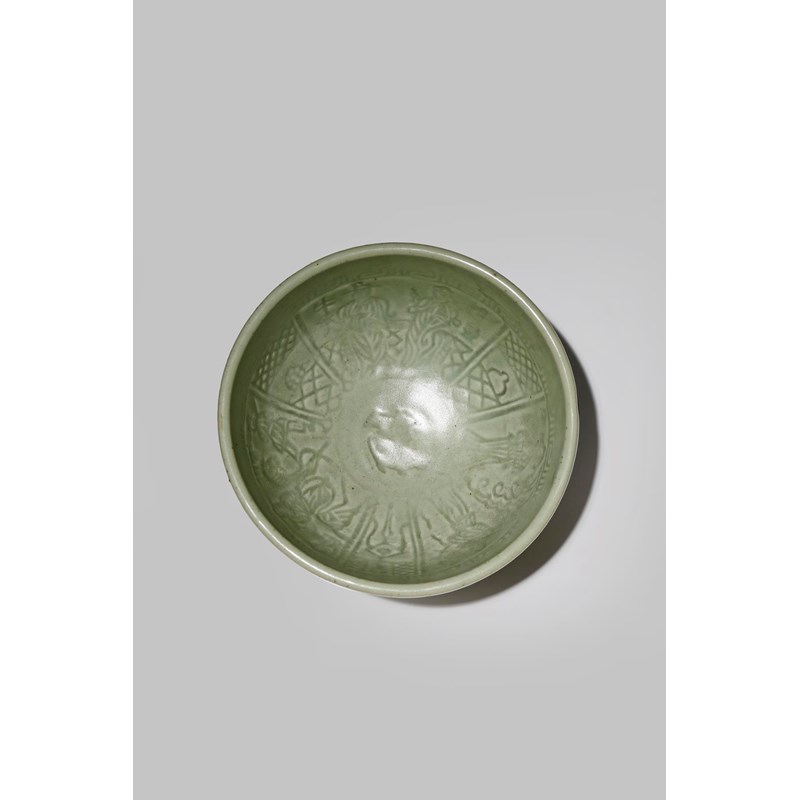 *A CHINESE LONGQUAN CELADON BOWL MING DYNASTY The U-shaped body moulded to the interior with...