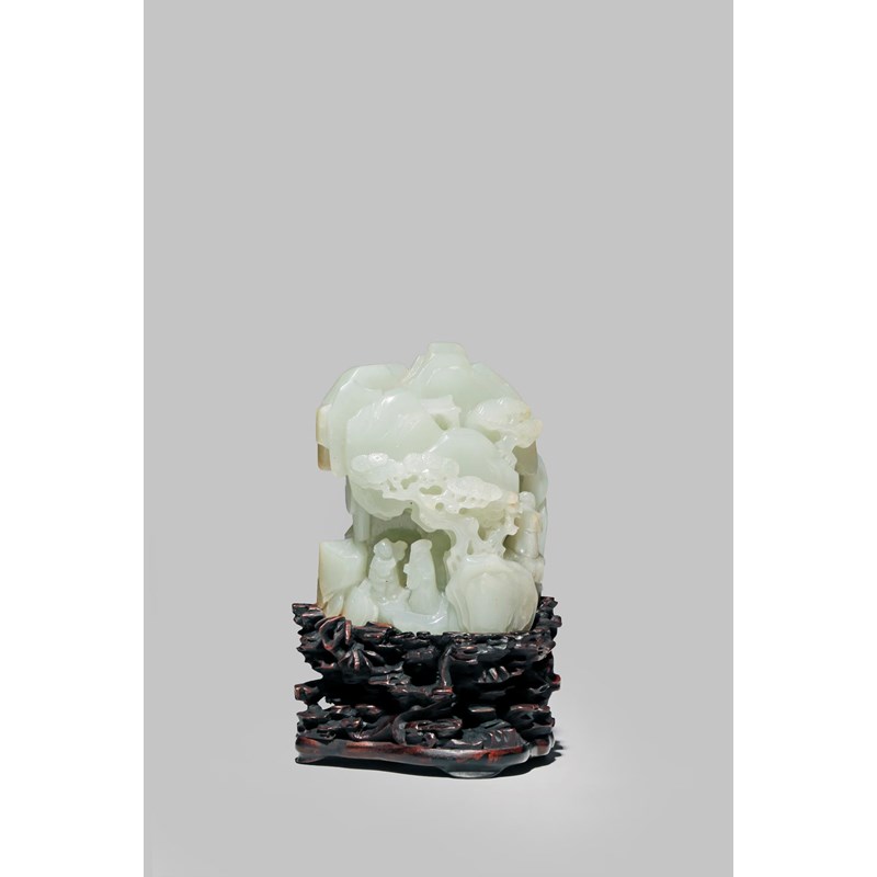A CHINESE PALE CELADON JADE MOUNTAIN CARVING QING DYNASTY OR LATER With three figures