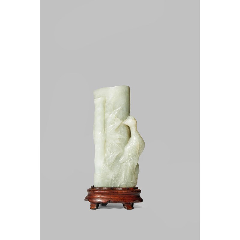 A CHINESE CELADON JADE VASE LATE QING DYNASTY The elongated body carved as a section of bamboo