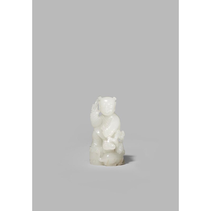A CHINESE WHITE JADE FIGURE OF A BOY
